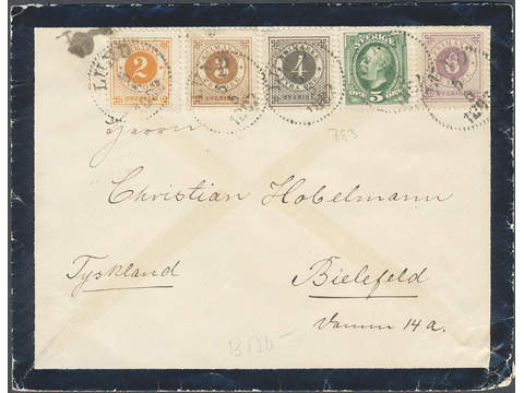 Vackert brev med femfärgsfrankering stämplat LUND 5.5.1892 till Tyskland Lagerantal: I lager 1 200 SEK Lägg i varukorgen Beskrivning Katalog: Facit 40, 41, 42, 44, 52a Det finns ingen beskrivning för denna produkt ännu.