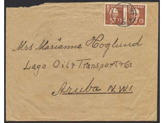 Sweden. Facit 324BC cover , 1940 Carl Michael Bellman 5 öre green, pair 3+4 on postcard …