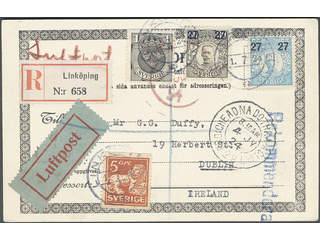 Sweden. Facit 98, 78, 91, 96 cover , 50 öre + 12x1 + 2.12 + 5 kr on address card for …