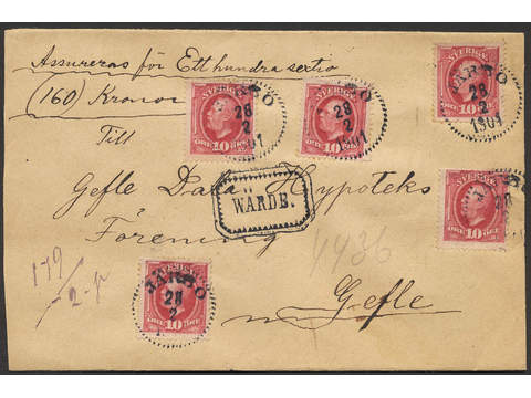Sweden. Facit 53 cover , WÄRDE, frankerat med 5×10 öre från JÄRBO 28.2.91 sänt till Gävle.