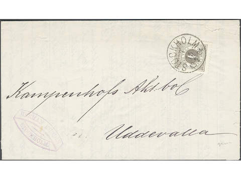 Sweden. Facit 29d cover , 4 öre deep grey-grey on inland printed matter cancelled STOCKHOLM 15.2.1884.