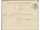 Sweden. Facit 32e cover , 12 öre dull greyish blue on inland cover of first rate. Beautiful envelope with all of reverse full of small advertisements and the sender of the item with red colour. Ex. Göta Frimärken auction 30.3.2020 lot 139.