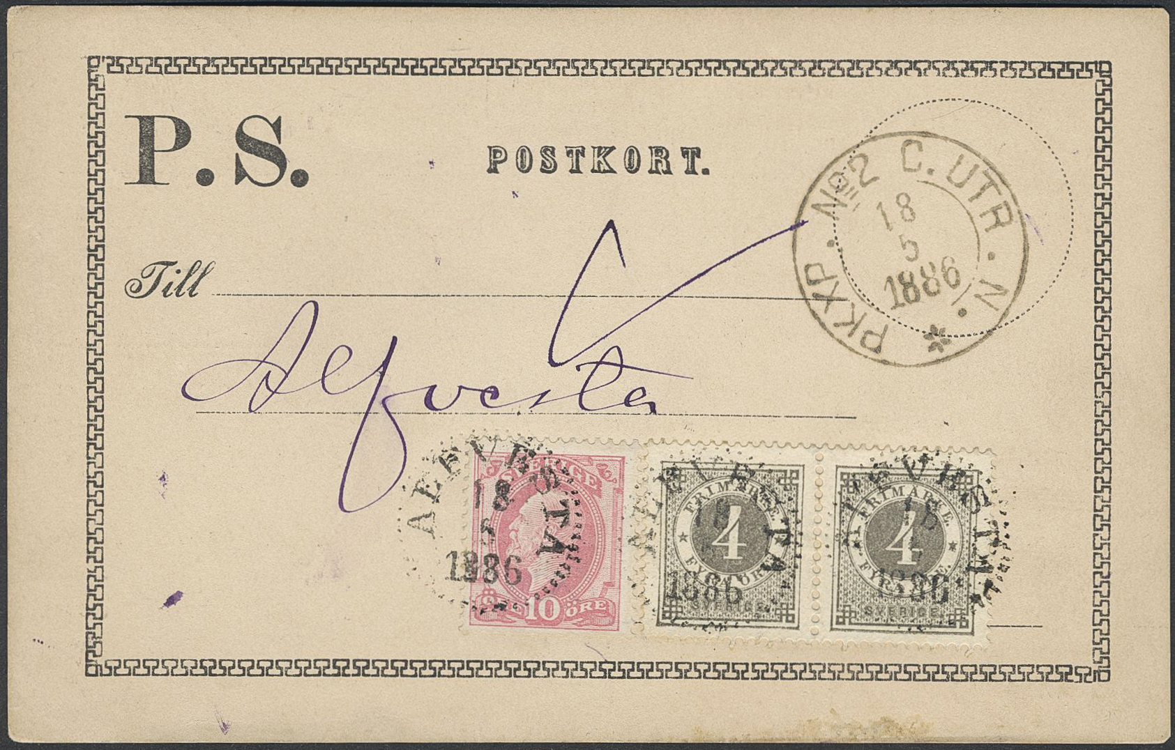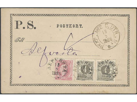 Sweden. Facit 29, etc. on cover, 2×4+10 öre on beautiful PS-card, used for an isnufficiently prepaid insured cover, cancelled ALFVESTA 18.5.1886.