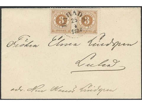 Sweden. Facit 41a on cover, 3 öre yellowish brown in pair on domestic printed matter of …