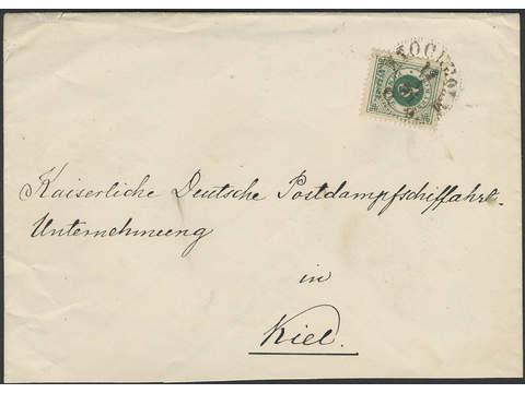 Sweden. Facit 43d on cover, 5 öre dark green on yellowish paper as single franking on printed matter of lowest rate sent to Kiel, Germany, cancelled STOCKHOLM C9 17.4.91.