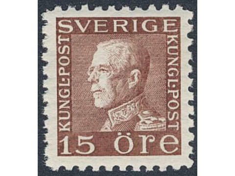 Sweden. Facit 178C ★★, 15 öre orange-like brown vertical perf 9¾ on four sides. Excellent quality.