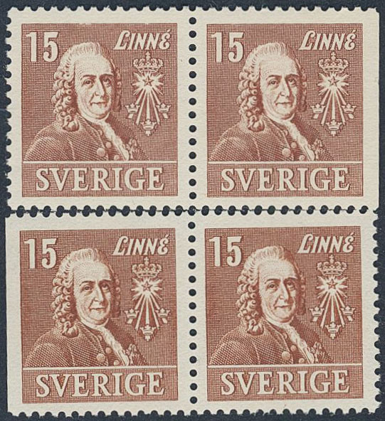 Sweden. Facit 321BC/CB ★★, 1939 Royal Academy of Sciences 15 öre brown, pair 3+4 and 4+3. Superb quality. SEK 3400
