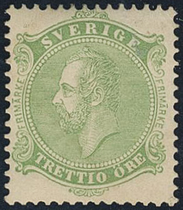 Sweden, C A Nymans proposal stamp TRETTIO öre in yellow green colour …