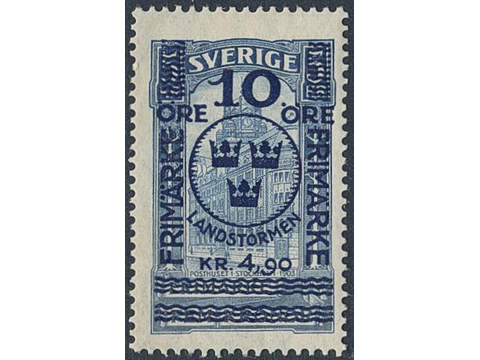 Sweden. Facit 125 ★★, 1916 Landstorm II 10+4,90 / 5 kr blue. SEK 1800