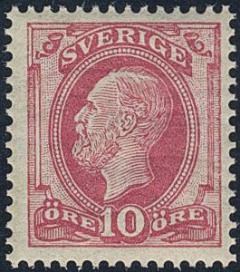 Sweden. Facit 45 ★★, 1886 Oscar II with posthorn on back 10 öre red. Very fine–superb. SEK 2200+