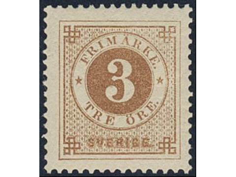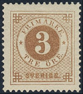 Sweden. Facit 28g ★, 3 öre deep orange-brown, calendered paper. Very fine and fresh.