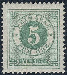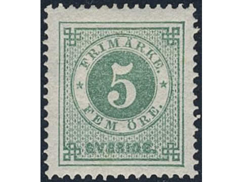 Sweden. Facit 30b ★, 5 öre dull bluish green. Superb.