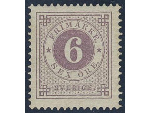 Sweden. Facit 31e ★, 6 öre greyish lilac. Weak natural paper fold. Opinion (shade) by …