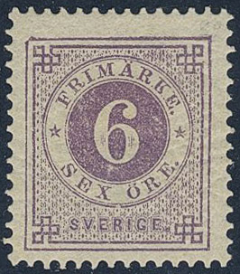 Sweden. Facit 31j ★, 6 öre bluish lilac on calendered paper. Signed Sjöman. Opinion …
