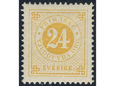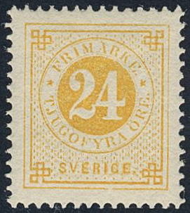 Sweden. Facit 34j ★, 24 öre orange-yellow on calendered paper. EXCELLENT.