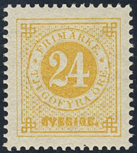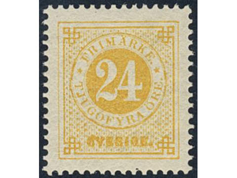 Sweden. Facit 34k ★, 24 öre yellow on calendered paper. Superb–EXCELLENT. Signed by O.P.