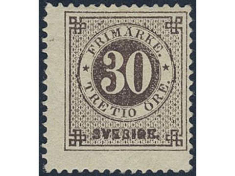 Sweden. Facit 35h ★, 30 öre black-brown on soft paper. Opinion (shade) by O.P. SEK 5000