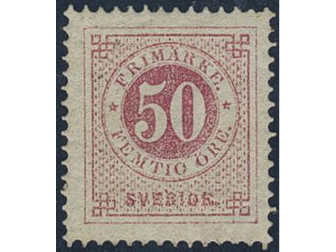 Sweden. Facit 36a ★, 50 öre carmine. One slightly short perf. Superb centering. Opinion (shade) by O.P. SEK 3000