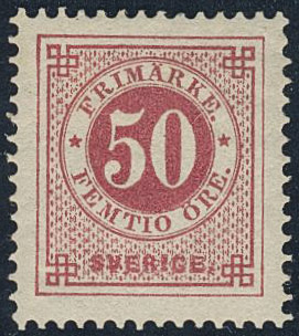 Sweden. Facit 36g ★, 50 öre carmine-red on soft paper. Superb.