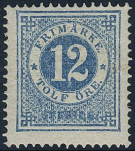 Sweden. Facit 21k ★, 12 öre blue-light blue. Colour fresh. Opinion (shade) by O.P. SEK 2200
