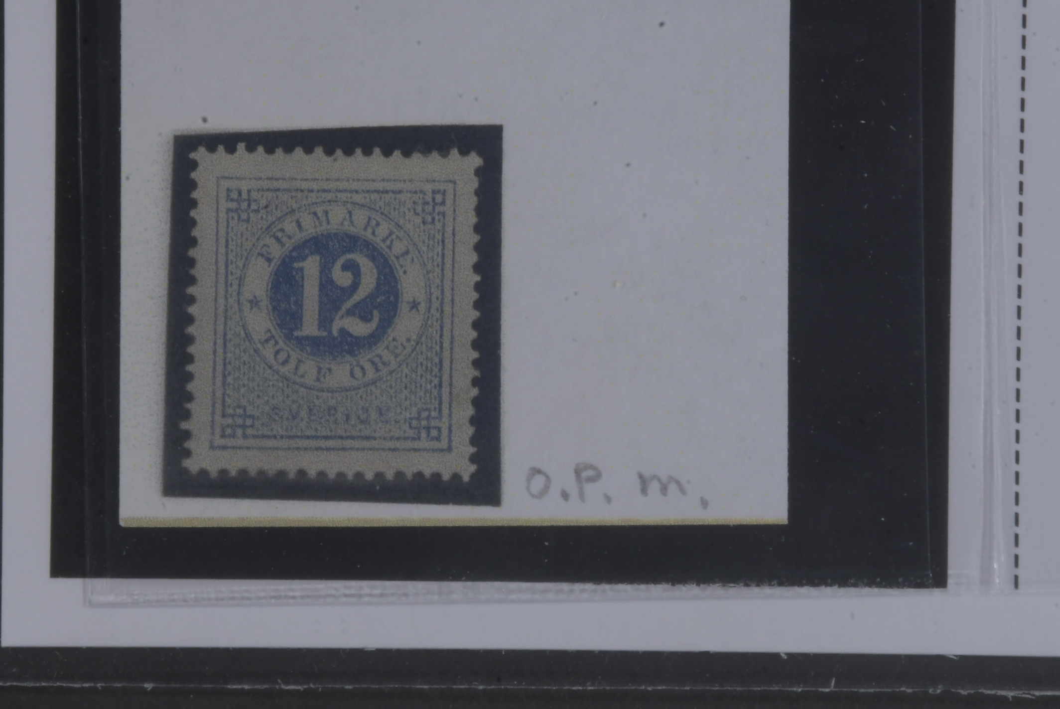Sweden. Facit 21m ★, 12 öre blue. Superb–EXCELLENT centering. Opinion (shade) by O.P. SEK 2200