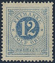 Sweden. Facit 21m ★, 12 öre blue. Superb–EXCELLENT centering. Opinion (shade) by O.P. …