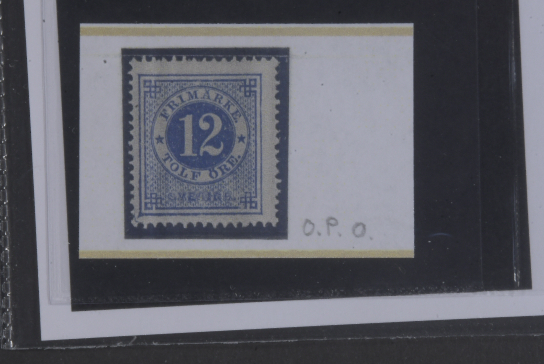 Sweden. Facit 21o ★, 12 öre ultramarinish deep blue, distinct print. Opinion (shade) by O.P. SEK 2500