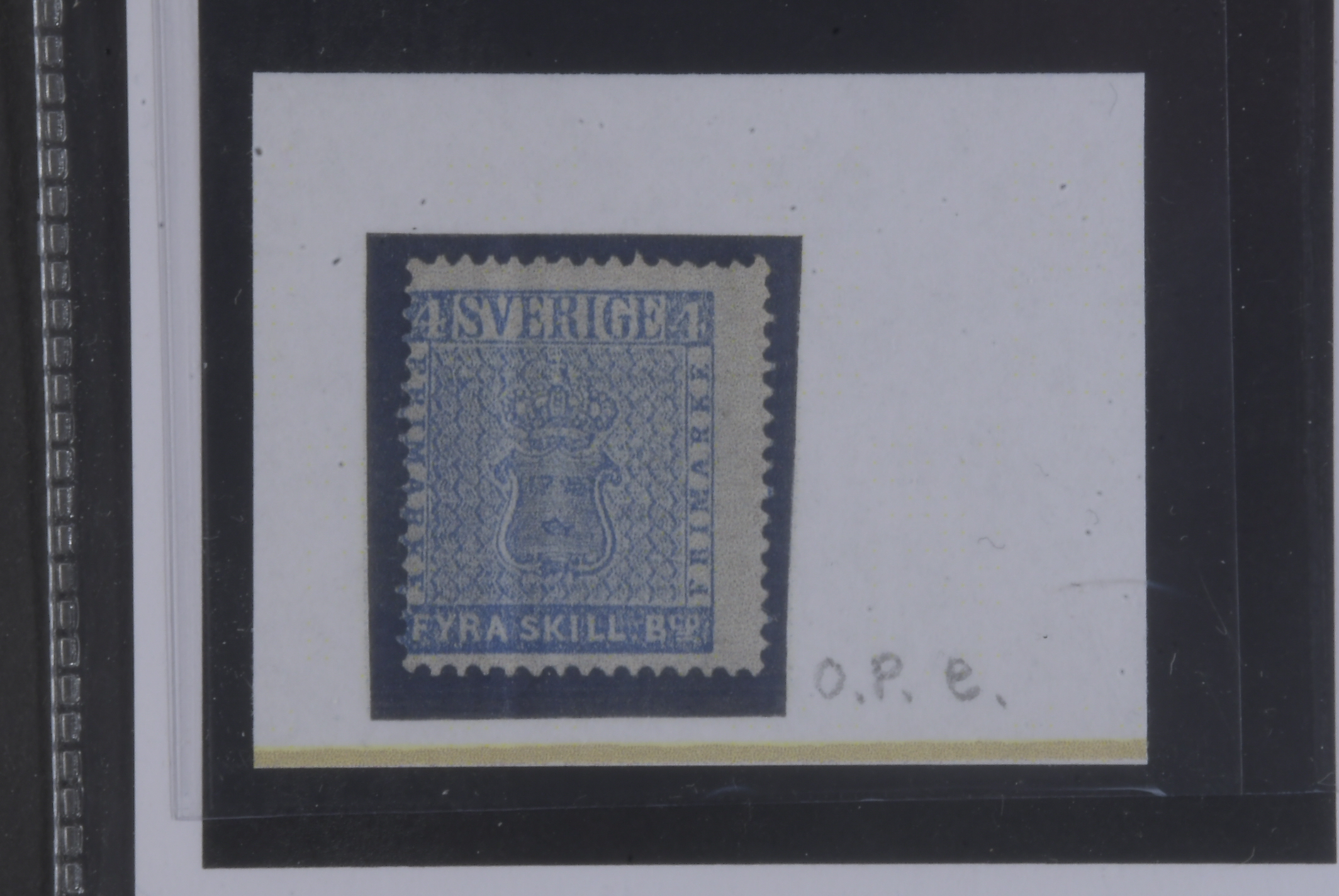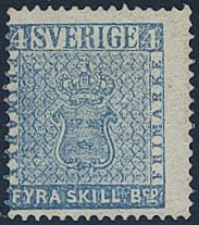 Sweden. Facit 2e (★), 4 skill blue, medium-thick paper. Opinion (shade) by O.P. SEK 14000