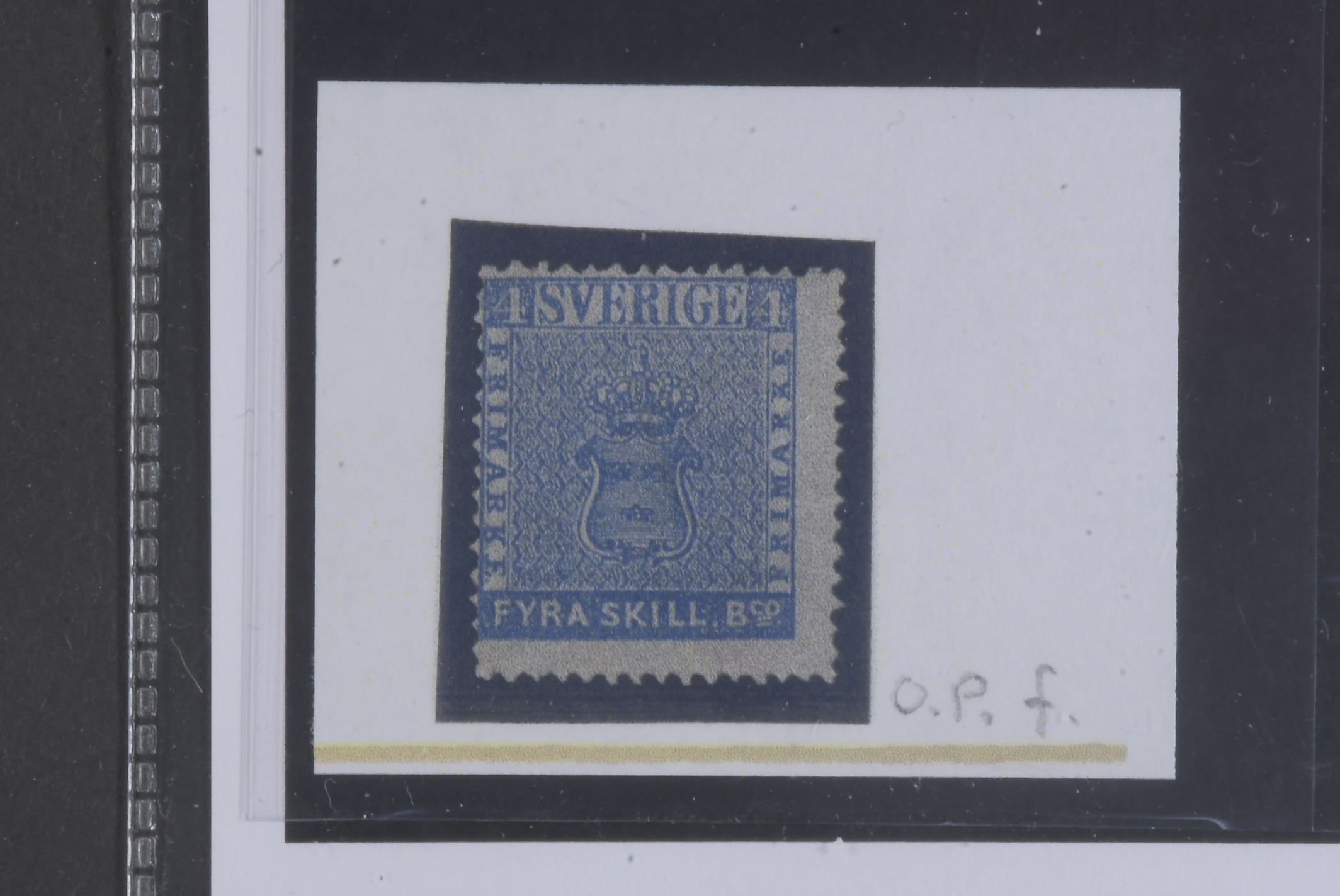 Sweden. Facit 2f (★), 4 skill blue, dense background, medium-thick paper. Opinion (shade) by O.P. SEK 14000