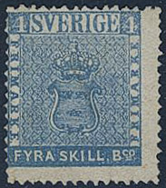 Sweden. Facit 2f (★), 4 skill blue, dense background, medium-thick paper. Opinion …