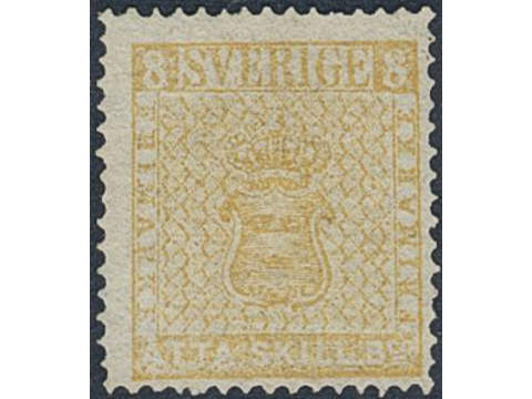 Sweden. Facit 4f (★), 8 skill dull yellow-orange, dense background on medium thick paper. Very fine and fresh copy with one short perf. of less importance. Certificate HOW 3,3, (-) (2011). SEK 50000