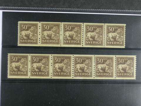 Sweden. Facit 148A ★★ , 30 öre brown in one strip of five and one strip of six. (2).