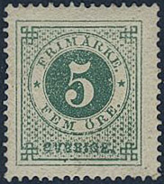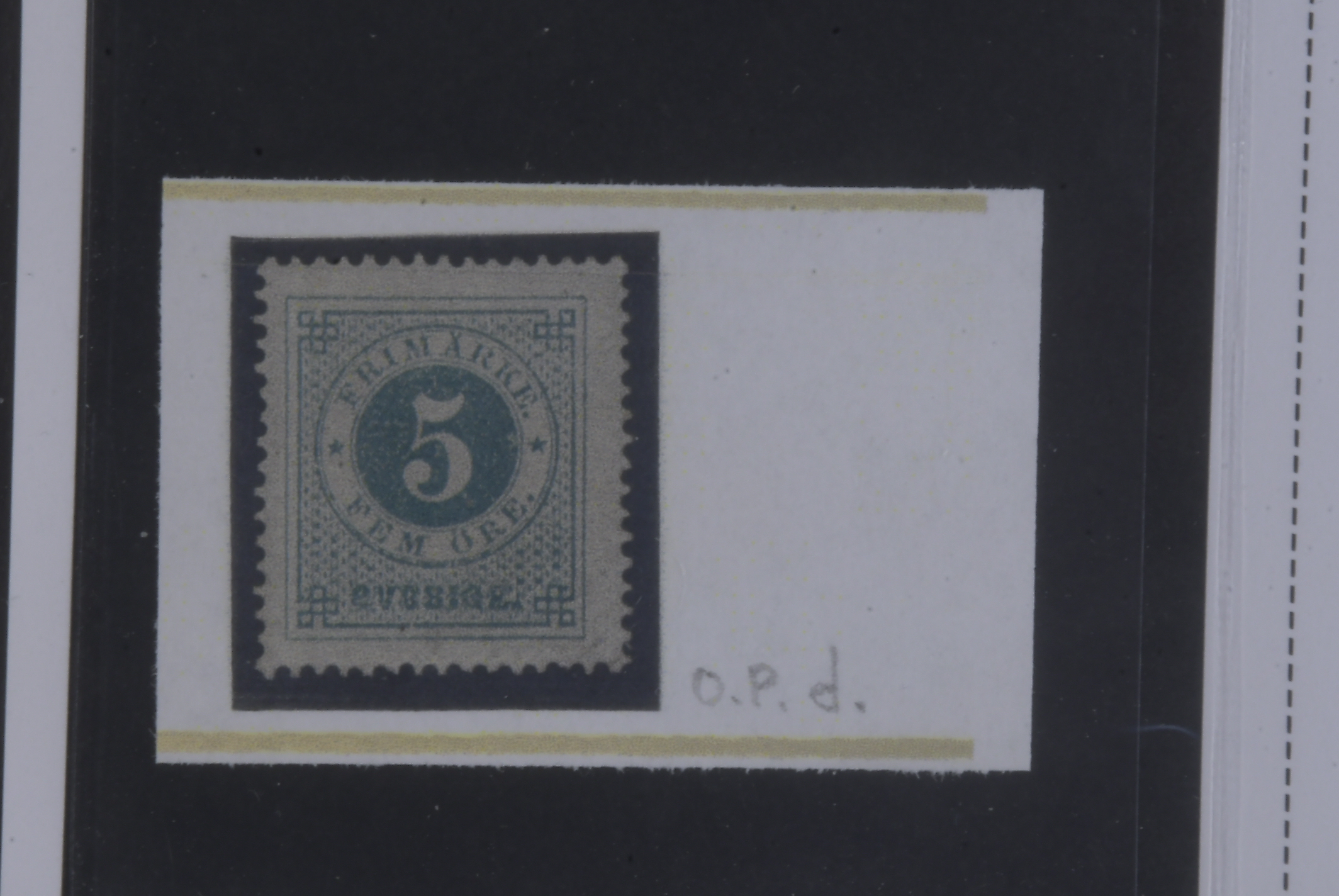 Sweden. Facit 19d ★, 5 öre blue-green. Slighty short perf. Opinion (shade) by O.P. …