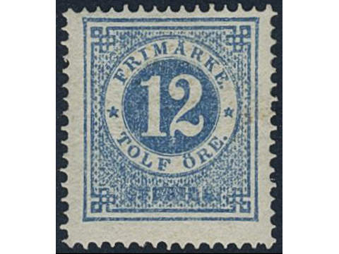 Sweden. Facit 21k ★, 12 öre blue-light blue. Colour fresh. Opinion (shade) by O.P. SEK 2200