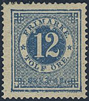 Sweden. Facit 21n ★, 12 öre dark blue, dense blurred background. Slightly short perfs. …