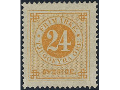 Sweden. Facit 24c v (★), 24 öre yellow-orange on yellowish paper. Abklatsch ('set-off') …