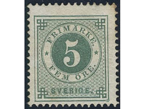 Sweden. Facit 30g ★, 5 öre dull green on white paper. Small age spot. SEK 3500