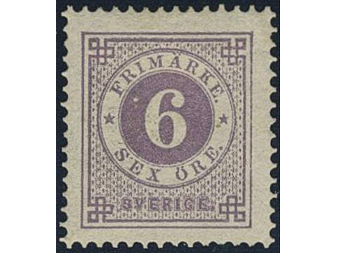 Sweden. Facit 31c ★, 6 öre dull lilac. The gum with small dots. SEK 2500