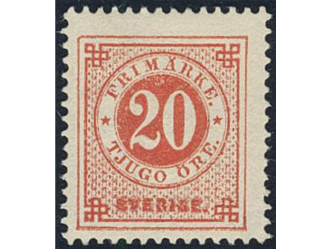 Sweden. Facit 33 ★, 20 öre red. Slightly worn perfs. SEK 2300
