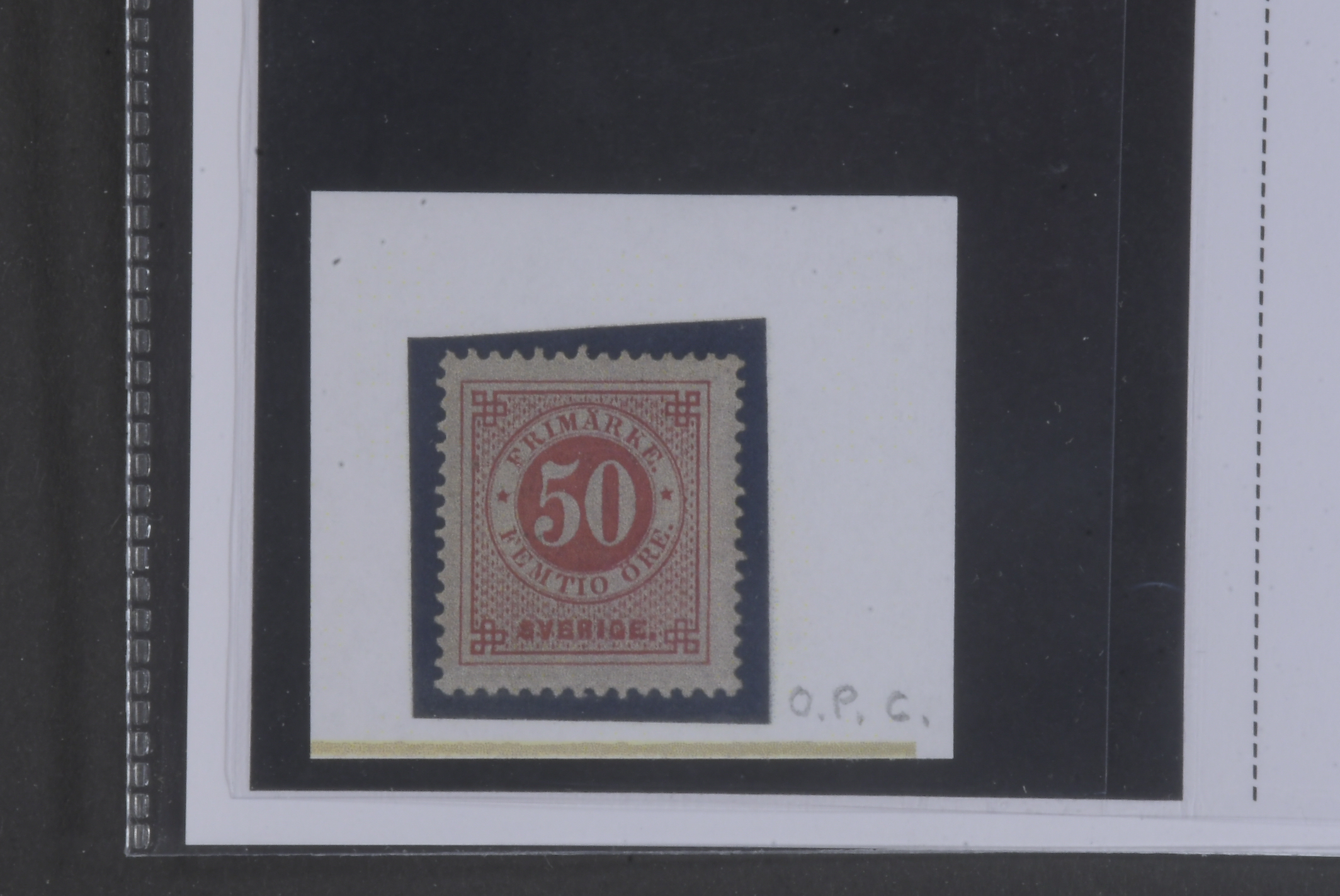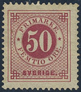 Sweden. Facit 36c ★, 50 öre violetish carmine. One weakly bent corner perf. Opinion (shade) by O.P. SEK 4000