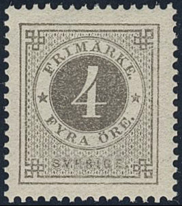 Sweden. Facit 42 ★★, 4 öre grey. Superb. SEK 1200
