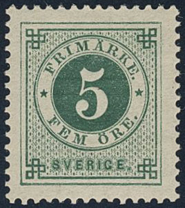 Sweden. Facit 43b ★, 5 öre dark green, clean distinct print. Superb. SEK 900