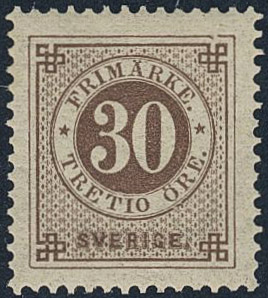 Sweden. Facit 47a ★, 30 öre olivish brown. Superb. SEK 3000+