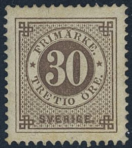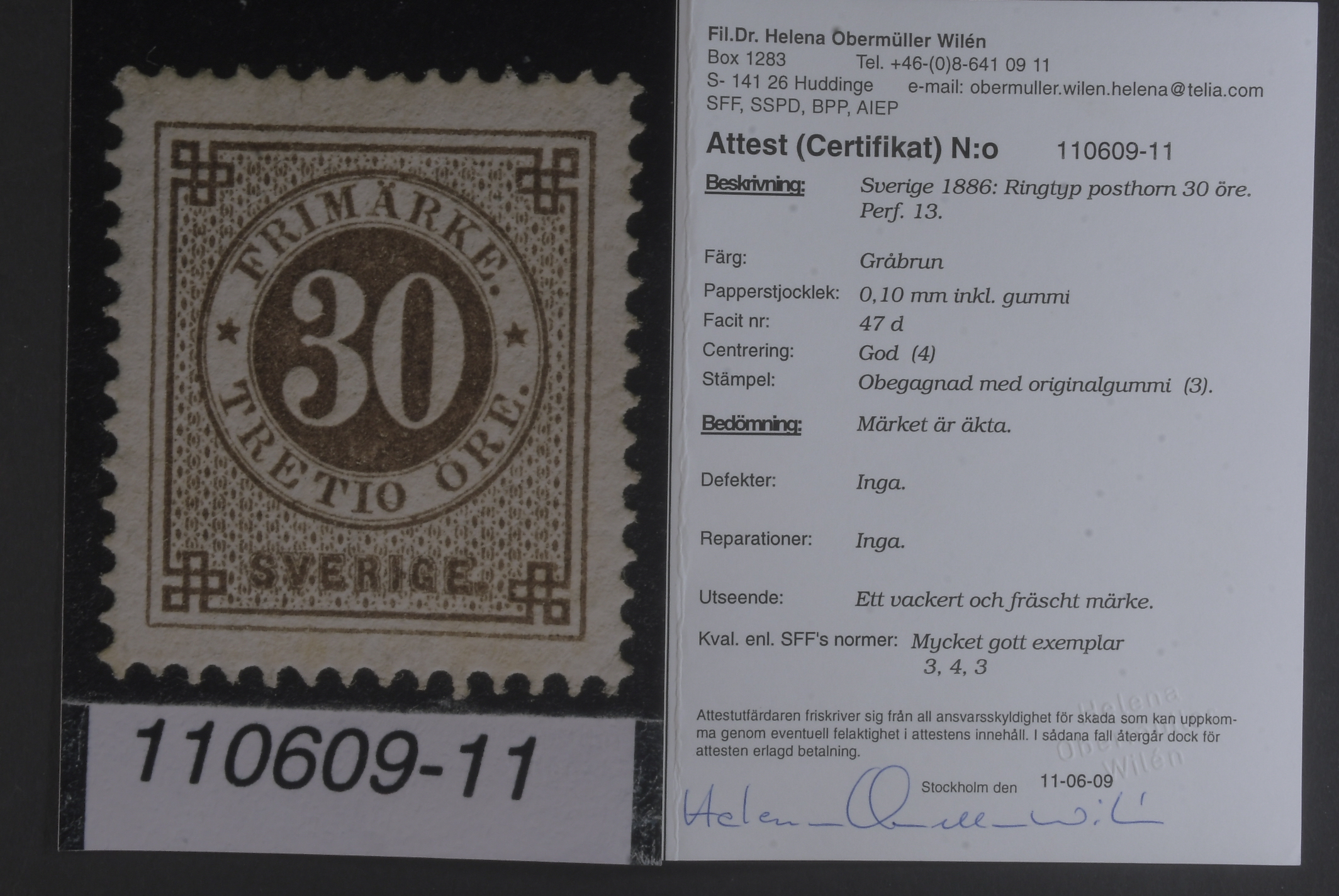Sweden. Facit 47d ★, 30 öre grey-brown. Certificate HOW 3, 4, 3 (2011). SEK 2000