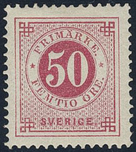 Sweden. Facit 48c ★, 50 öre violet-carmine. Partly with gum. Superb centering. Signed by O.P.