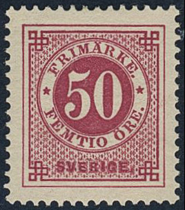 Sweden. Facit 48e ★, 50 öre dark violet-carmine. Superb. SEK 2400