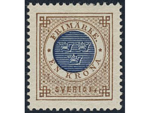 Sweden. Facit 49d ★, 1 Krona brown/dark blue. Superb–EXCELLENT.