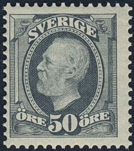 Sweden. Facit 59vm1 ★★, 1898 Oscar II 50 öre grey, inverted wmk. Very fresh. SEK 3000