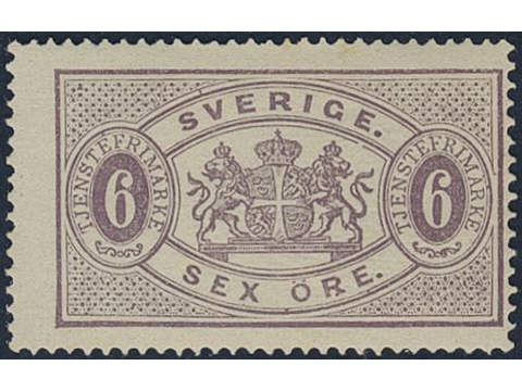 Sweden. Official Facit Tj4g ★★, 6 öre deep lilac, perf 14, yellowish paper. Opinion by …