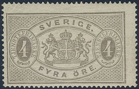 Sweden. Official Facit Tj4c ★, 6 öre olivish grey, perf 14. Opinion (shade) by O.P. SEK 4200